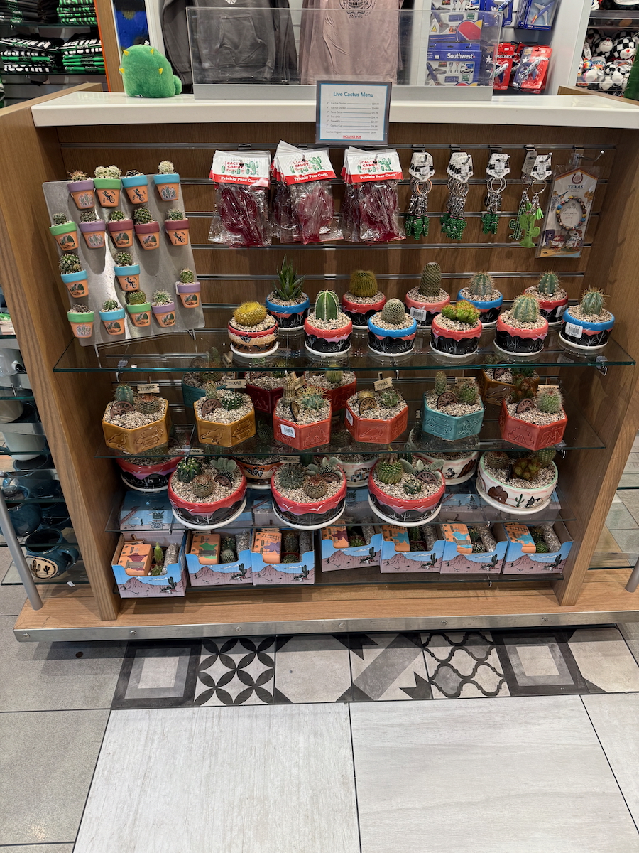 They sold live cactus at the airport gift shop. Are people really buying cactus in a pot at airport gift shops? Seems odd…