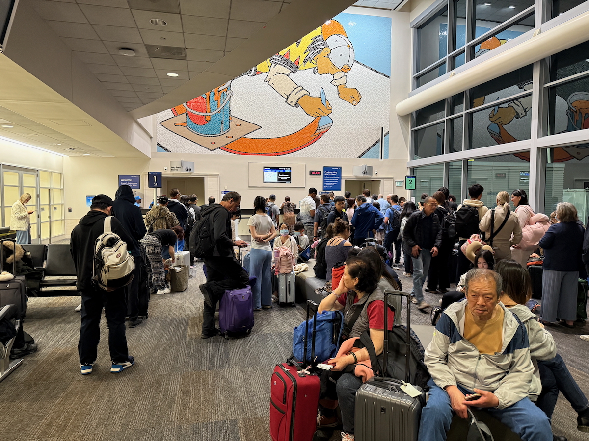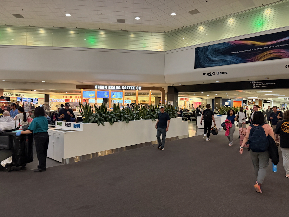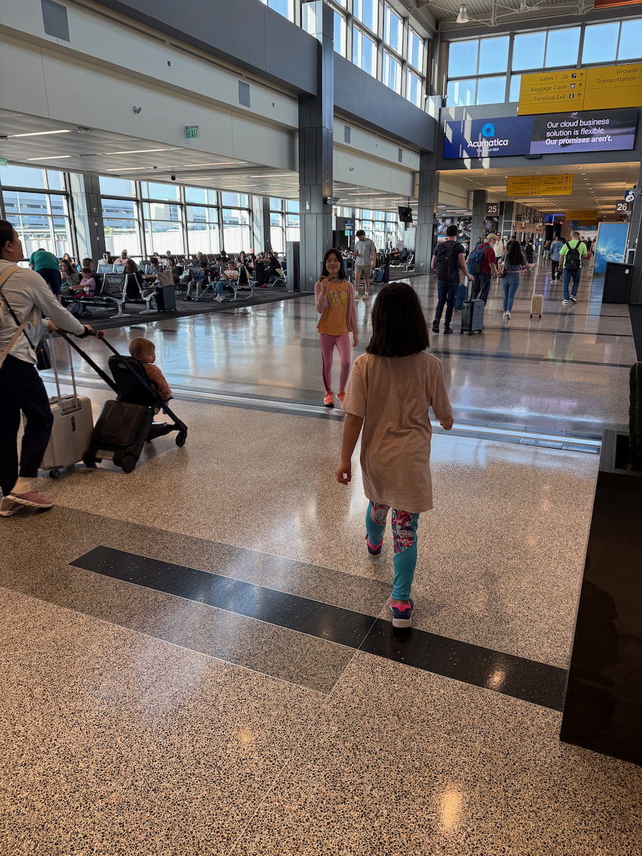 SFO, and now a really really really long walk to the international terminal. Seriously, why did they make this walk so long with no moving walkways?