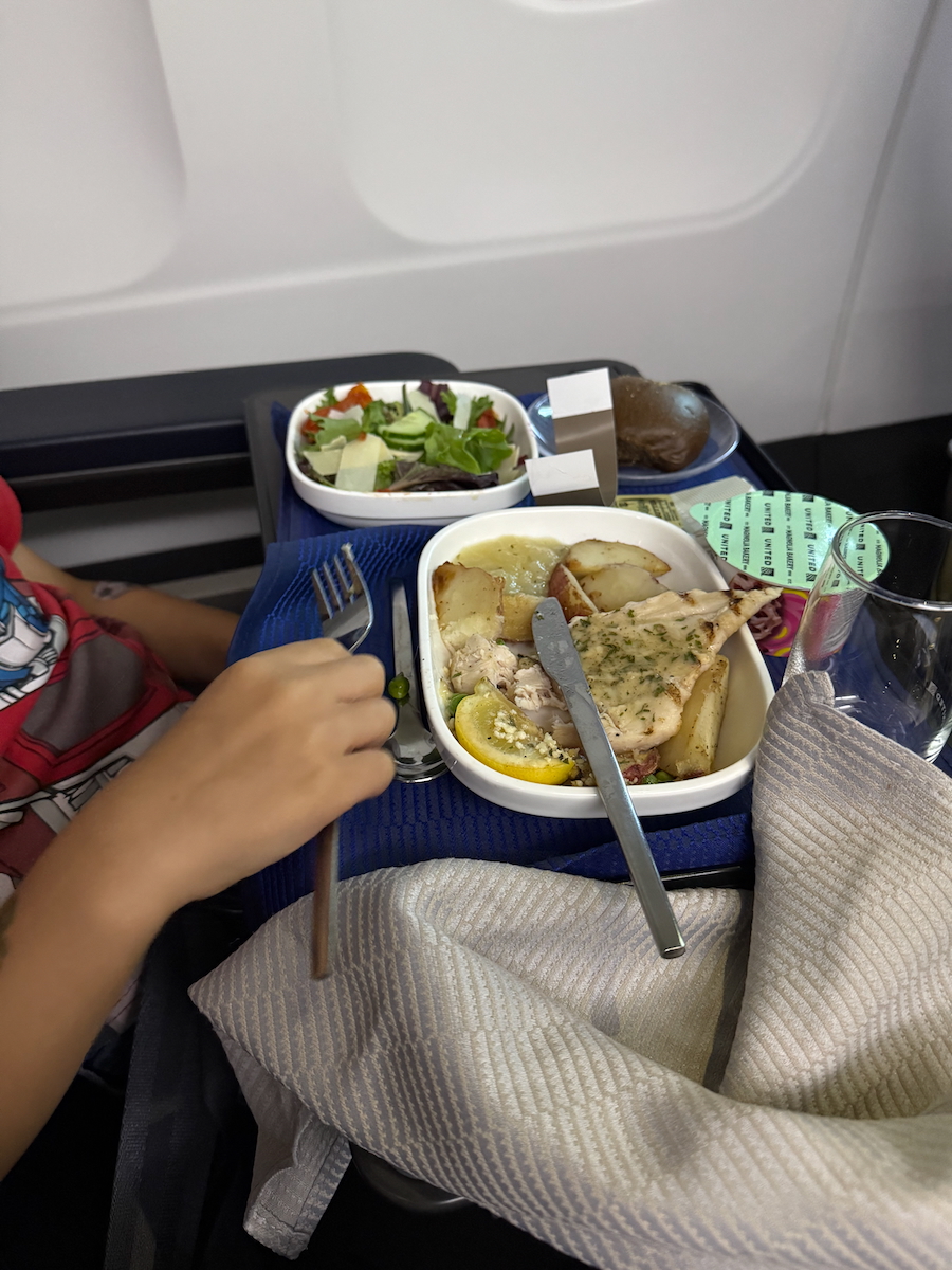 Even Little KL ate some second dinner. He was getting tired and sleepy towards the end of this flight and complained about how uncomfortable he was in his seat…in first class. Little spoiled punk.