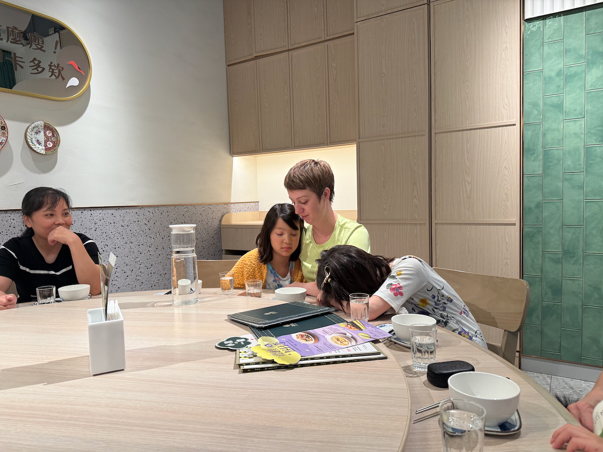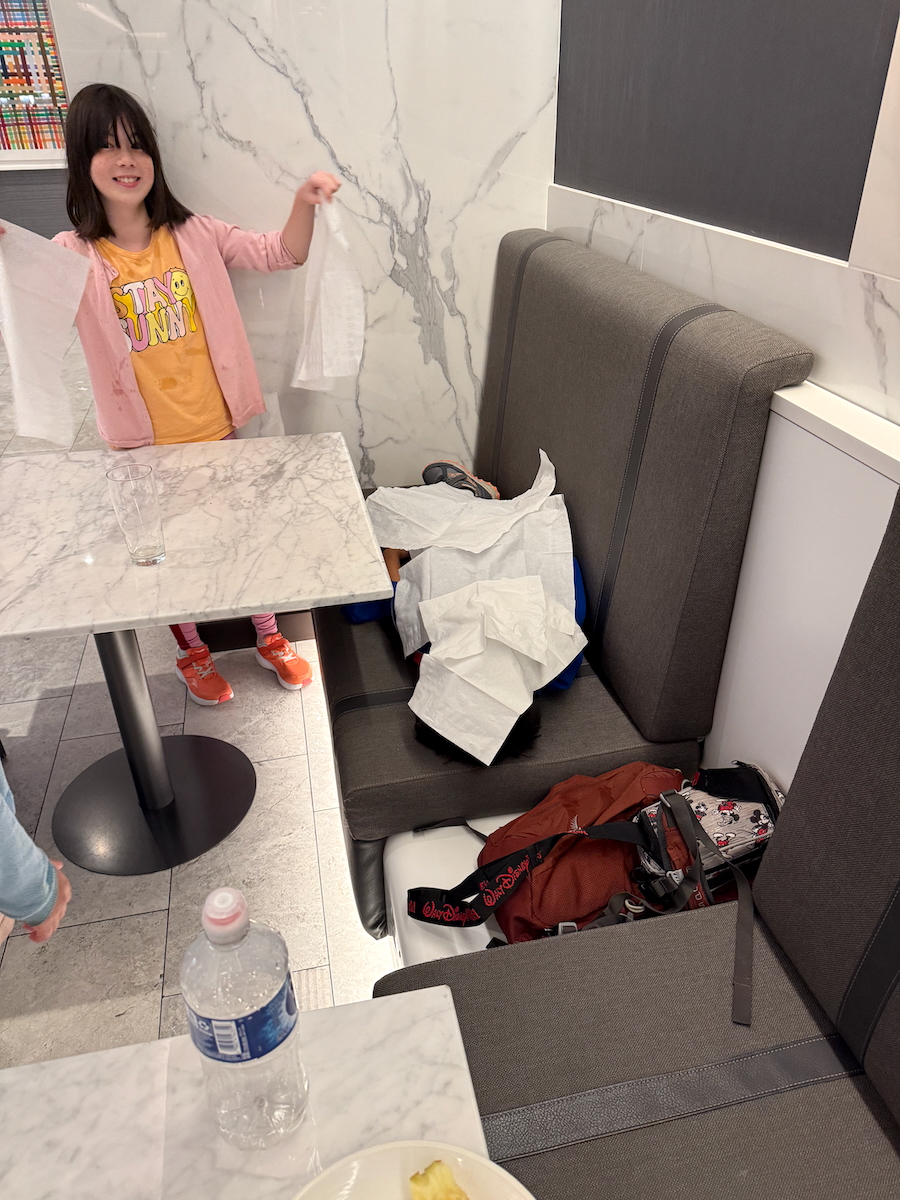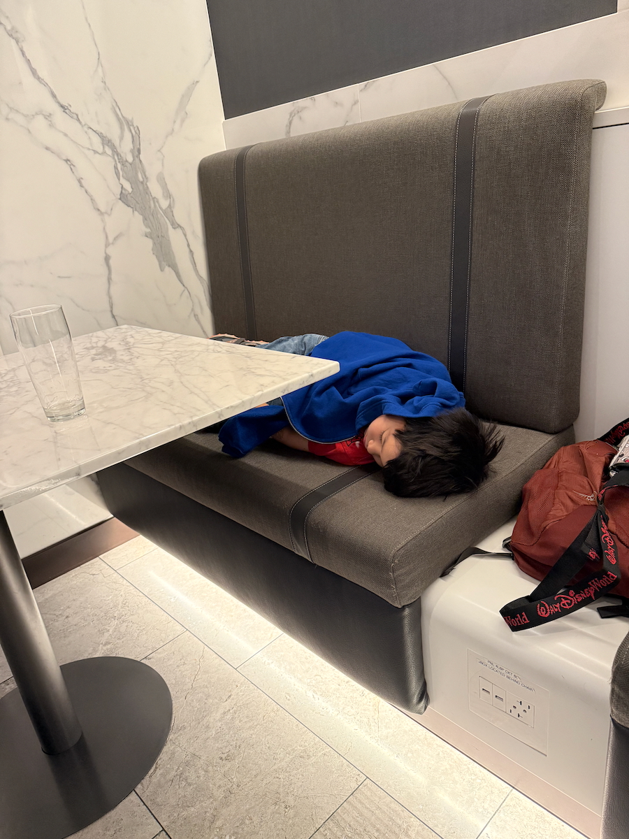 Jetlag is kicking in real hard. I wish we weren’t eating at a slow sit down restaurant, the kids are going to be hard to deal with here being so tired.