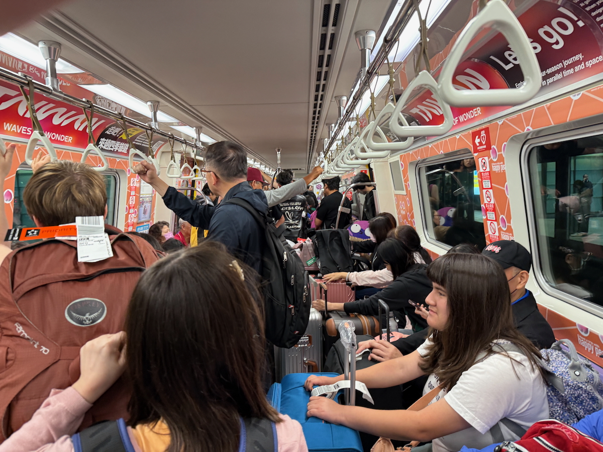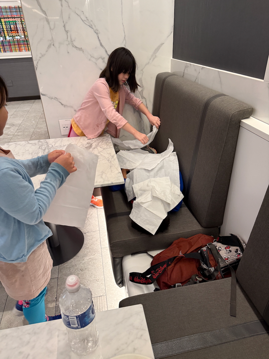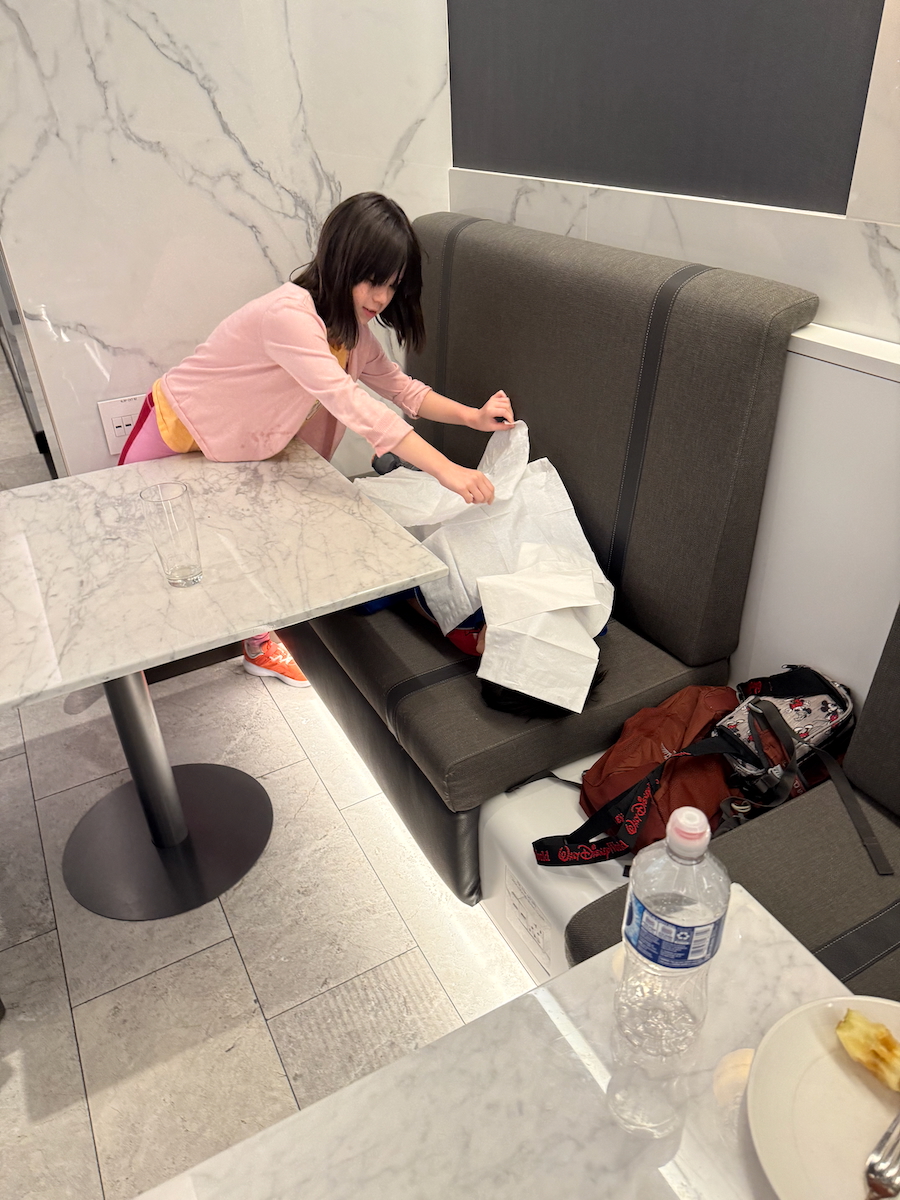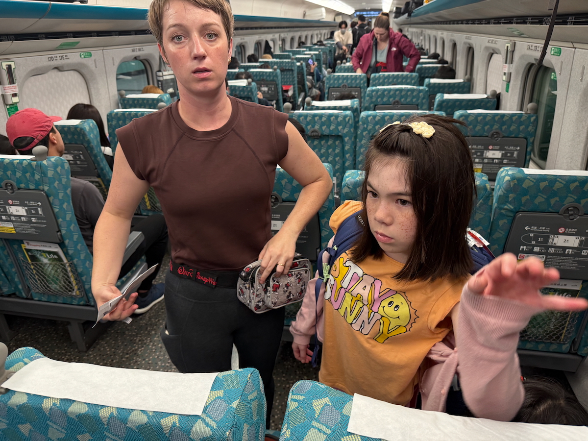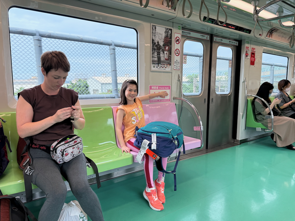 PL wanted to sit in the pink seats. She covered up all the priority passenger sign to make it “ok” for her to sit there. The train was pretty empty so it was fine.