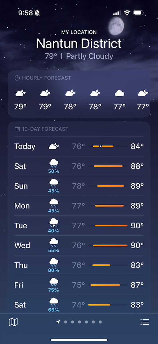 The weather forecast for our time here in Taiwan. Most and chances of rain daily. It’s so fucking hot and humid, but I still see people wearing jackets. WTF.