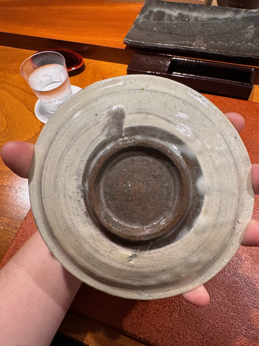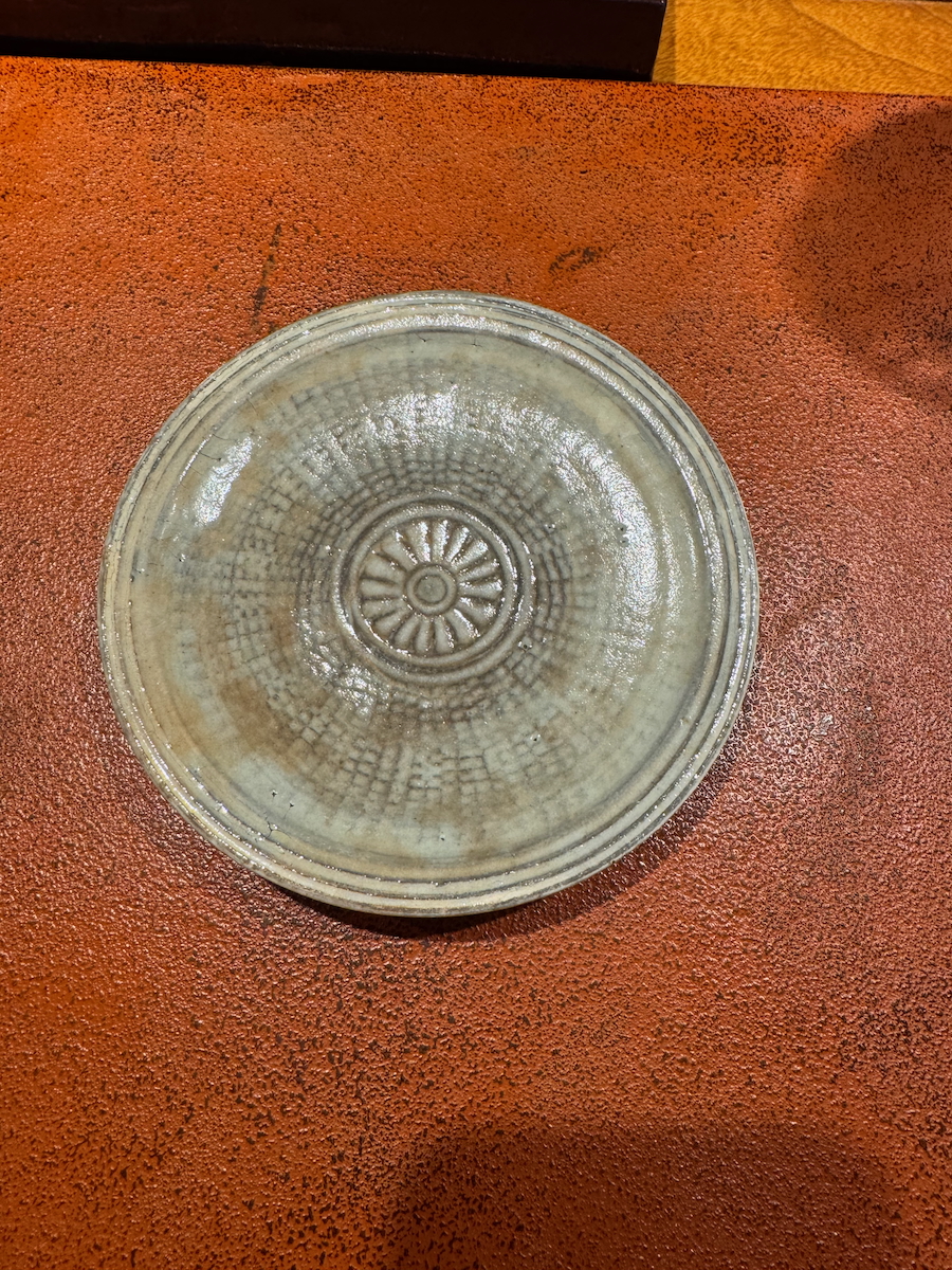 RL examining the pottery at the Michelin star restaurant.