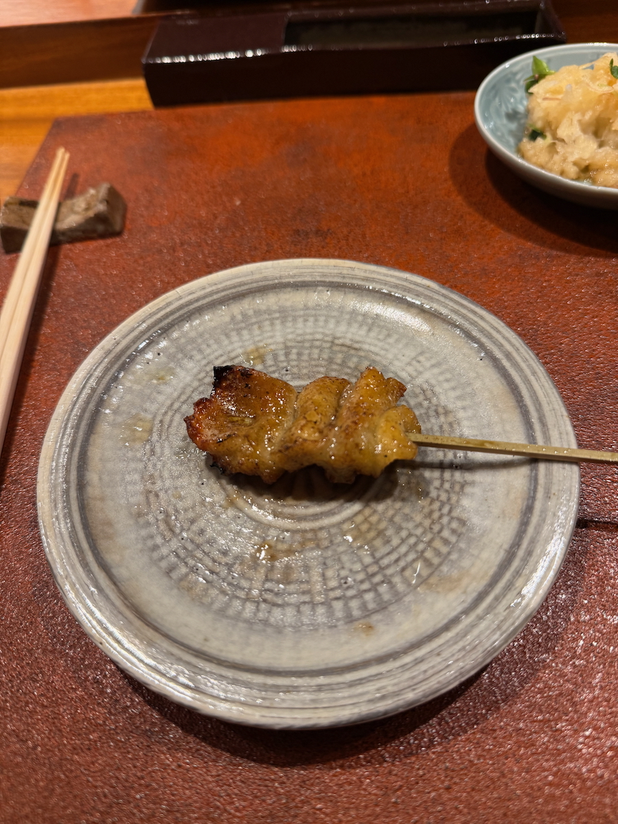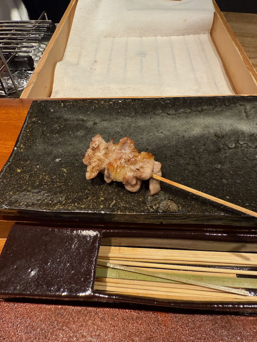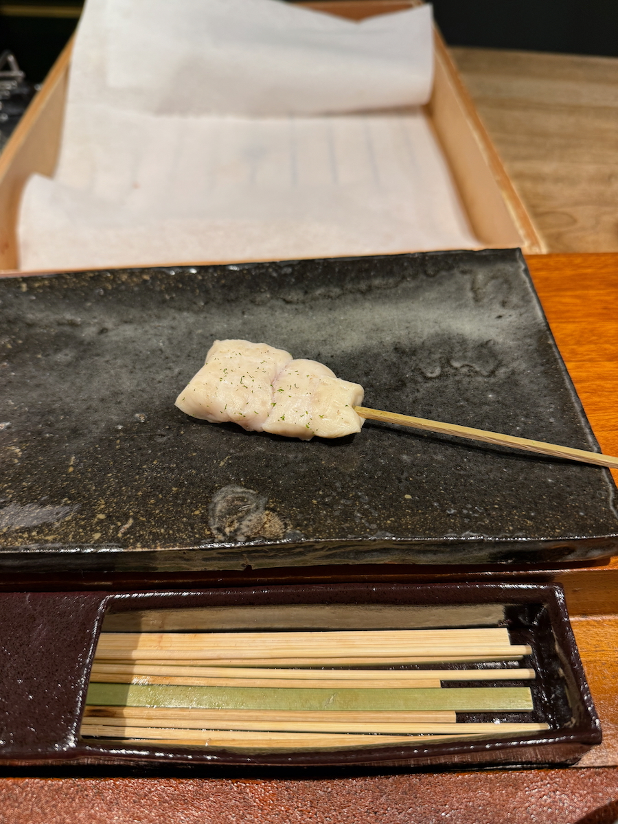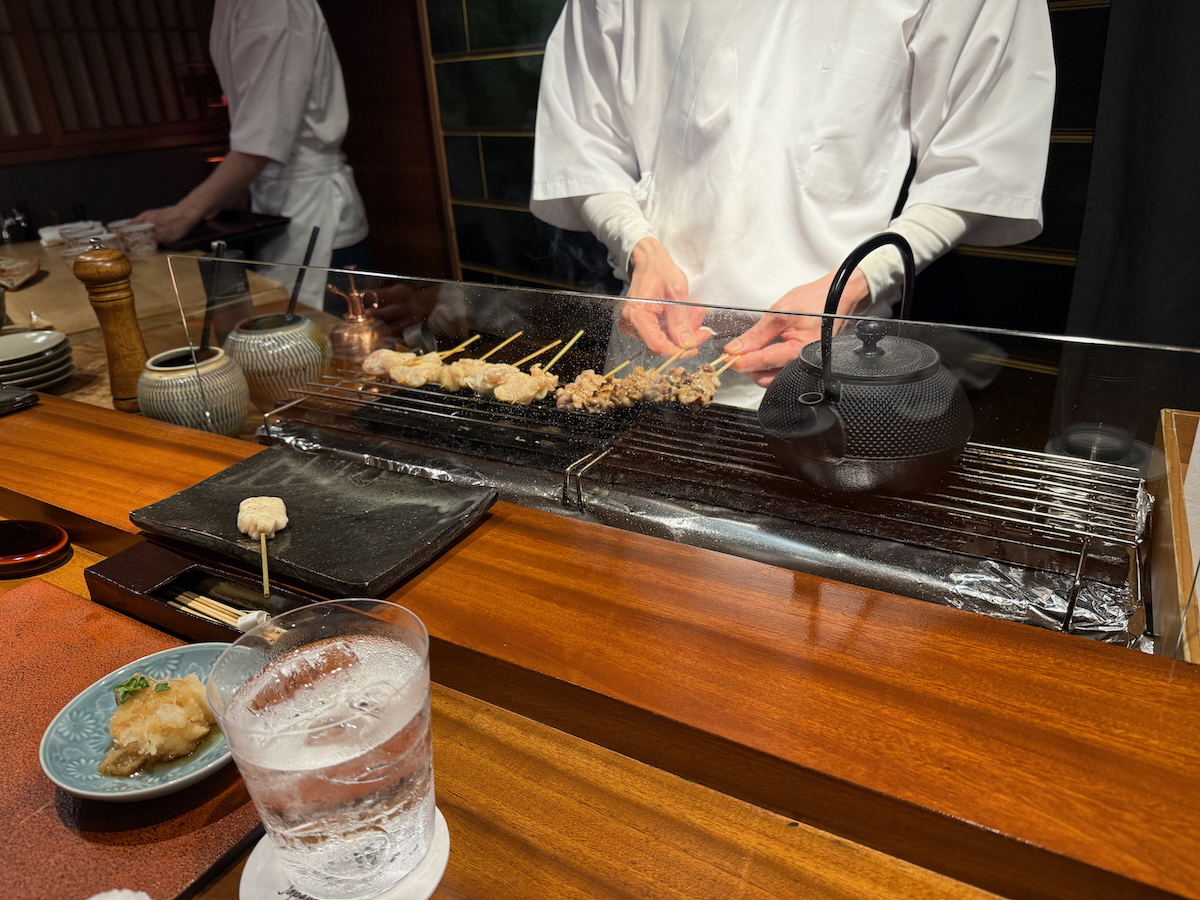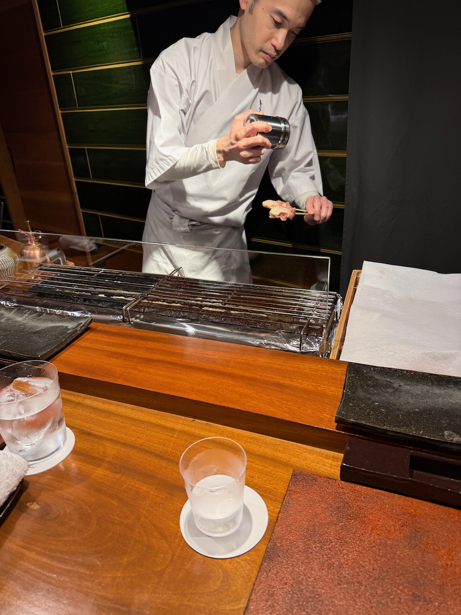 We go through the door, and it’s like a whole different world. An 8 Seat, Michelin 1 starred restaurant that specializes in yakitori of one particular type of pure breed Japanese chicken. Talk about niche.