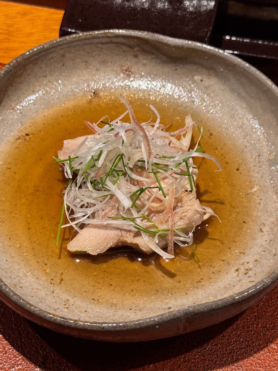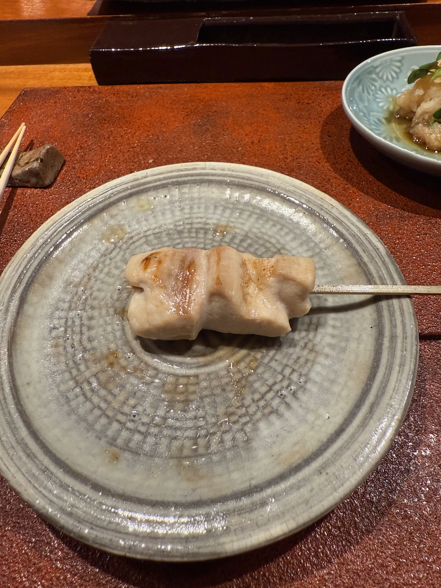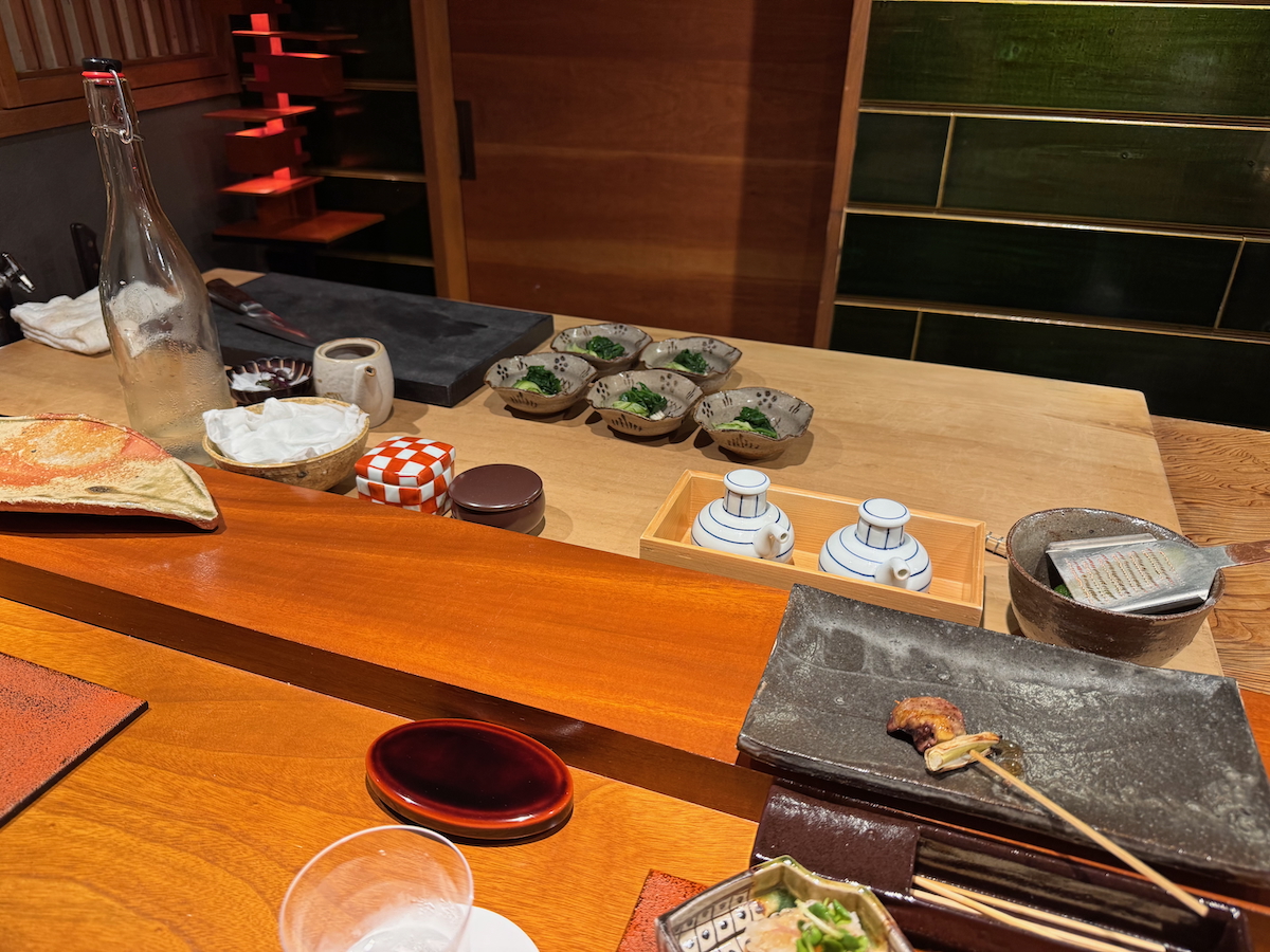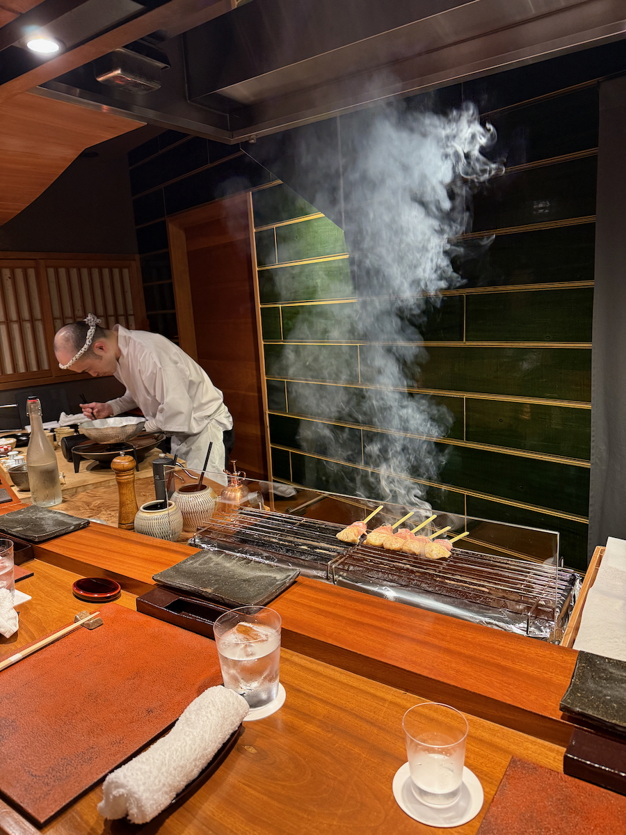 We go through the door, and it’s like a whole different world. An 8 Seat, Michelin 1 starred restaurant that specializes in yakitori of one particular type of pure breed Japanese chicken. Talk about niche.