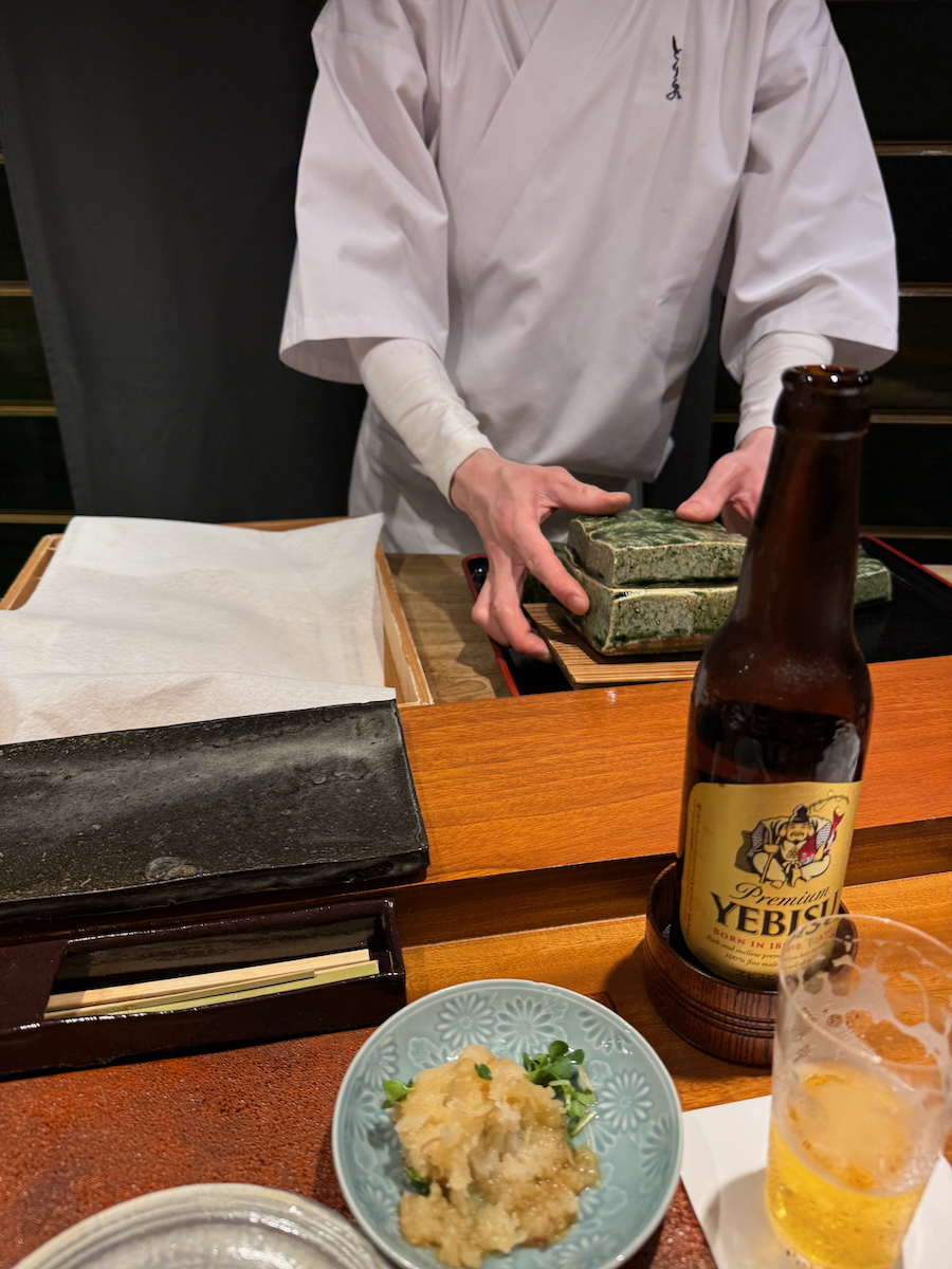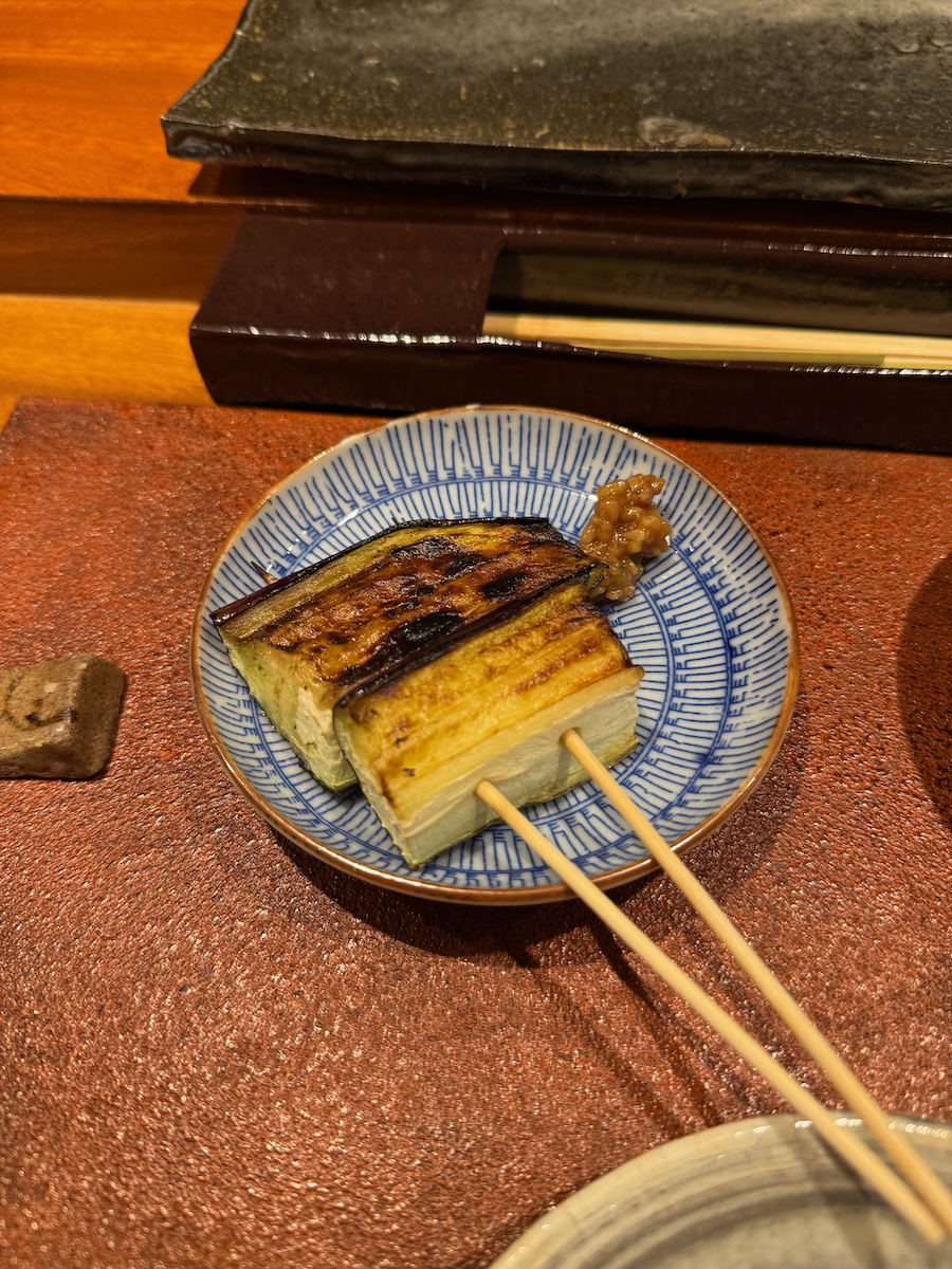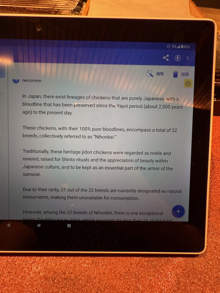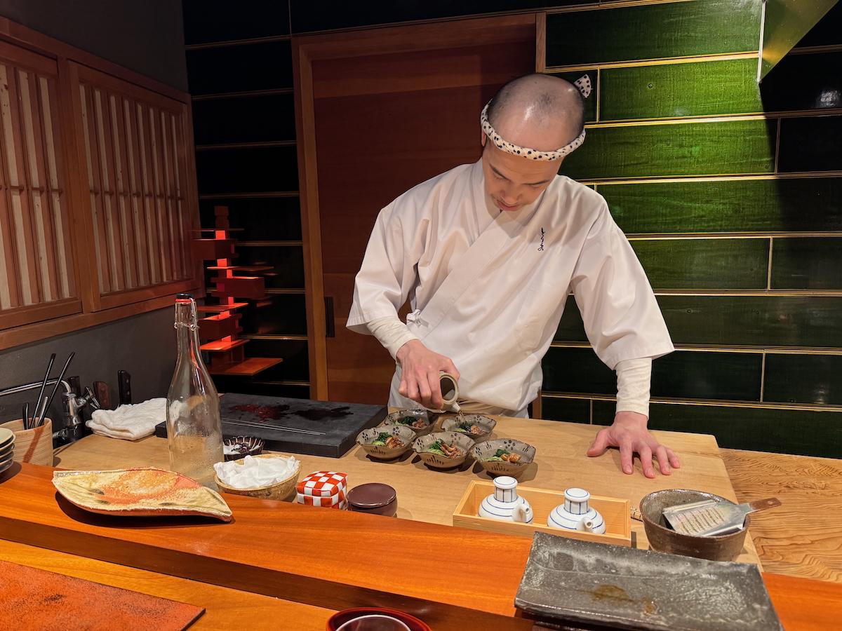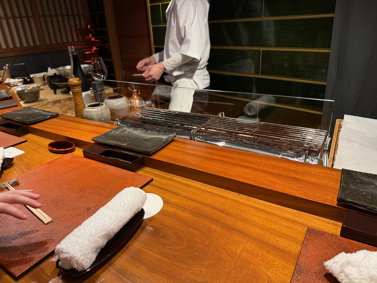 We go through the door, and it’s like a whole different world. An 8 Seat, Michelin 1 starred restaurant that specializes in yakitori of one particular type of pure breed Japanese chicken. Talk about niche.