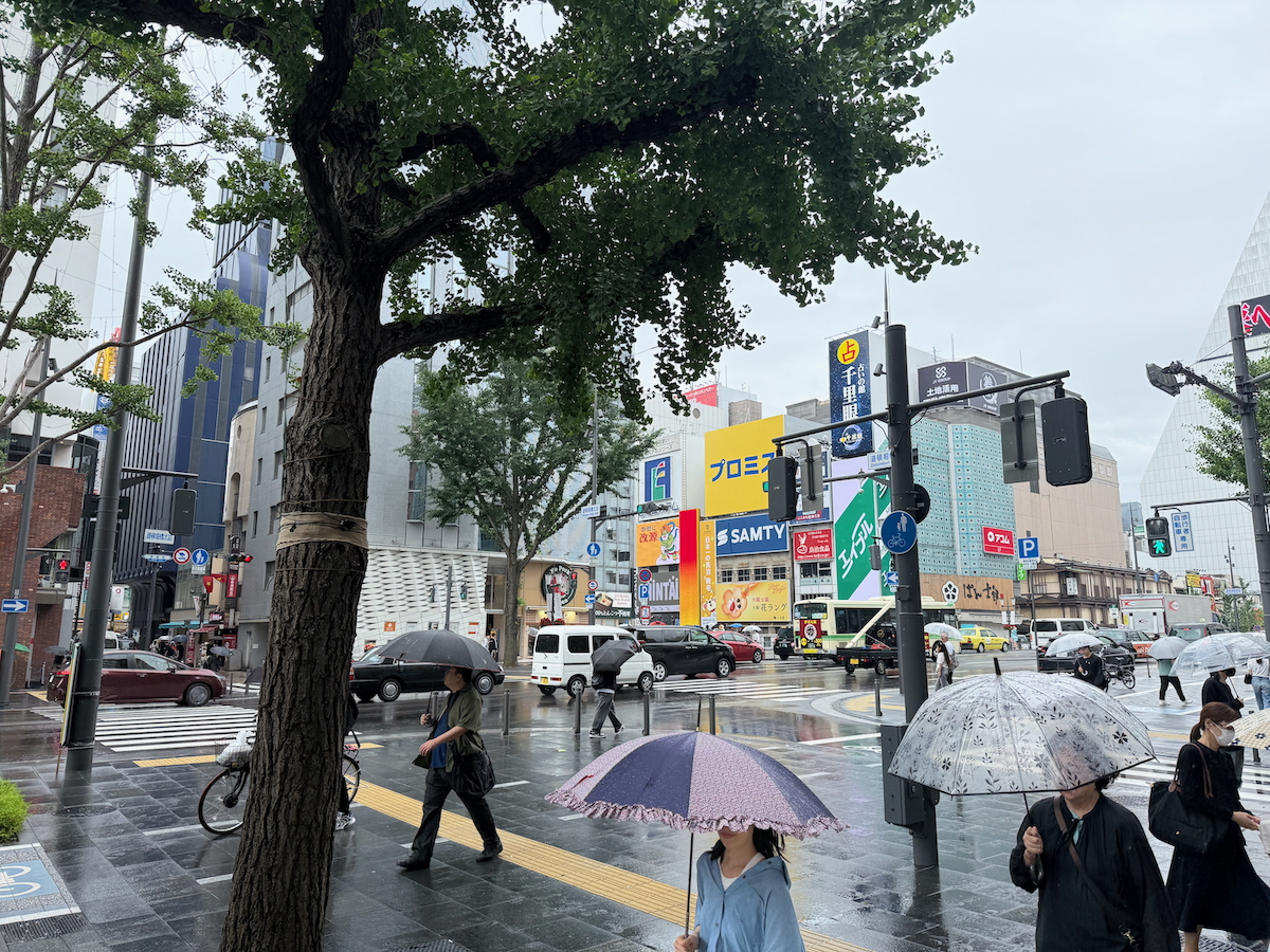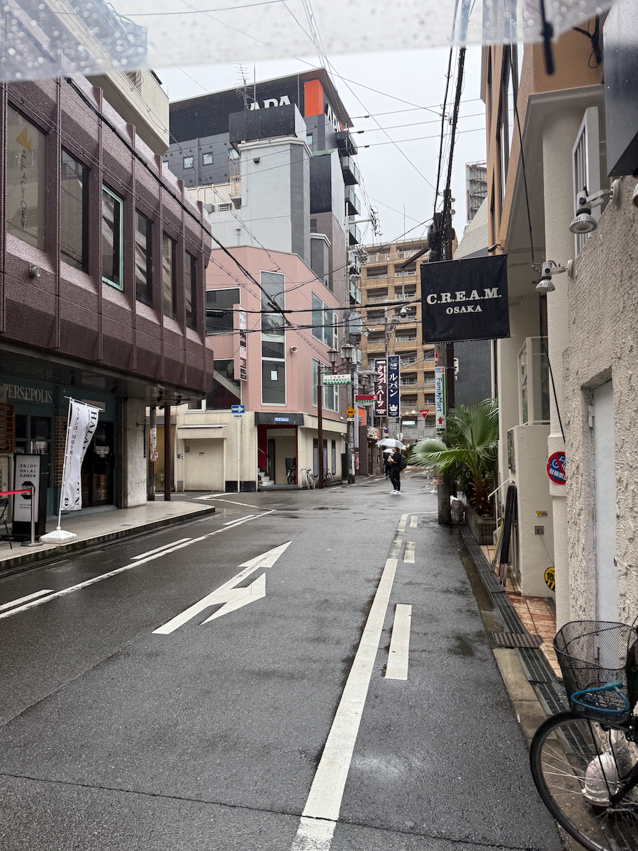 Alright, a break in the rain, let’s go. We just need to make it the 3 blocks until we are in a covered arcade.