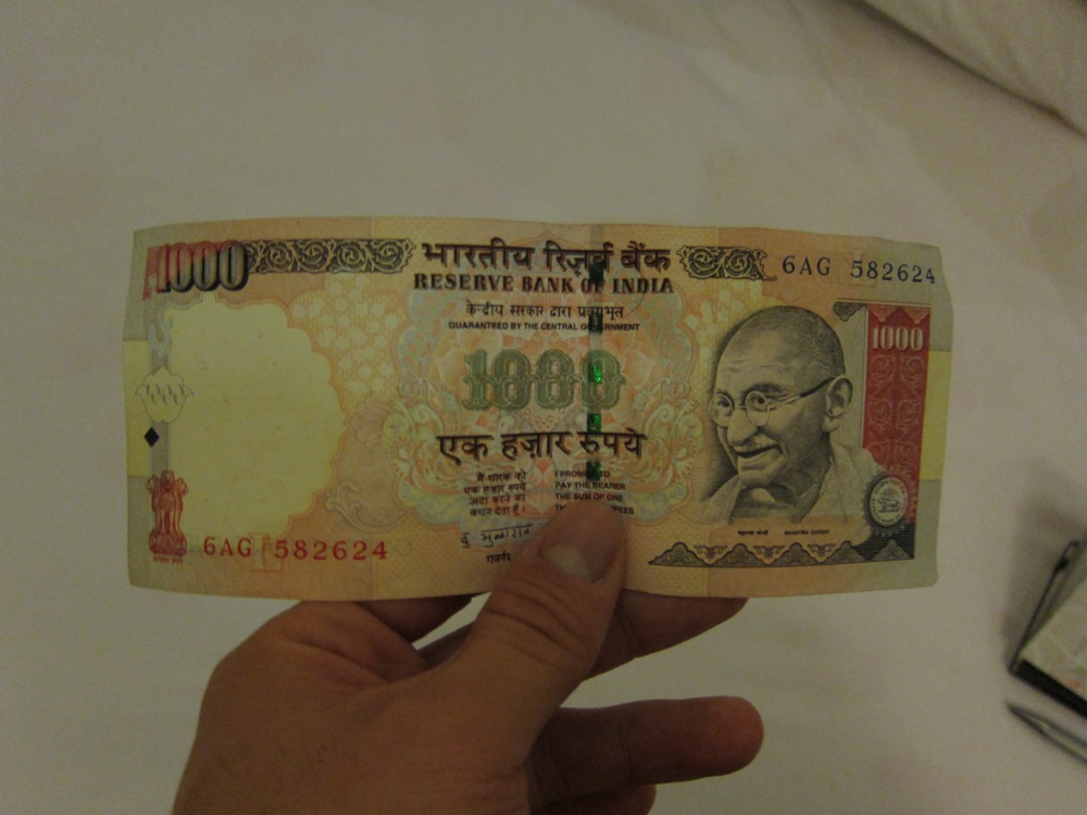 At my going away party, my friend GR invited some of his friends. One girl, whose name I do not recall, came up to me, and just handed me this 1000 INR(+- $20) bill. She said that it was a gift for me. I tried to give her USD in exchange, but she refused and I was too drunk to push the issue. Anyhow, I’ve decided that this money does not belong to me. I am going to keep it with me as a good luck charm, and when I come back to the States, I am going to give it to the next person I know who is going to visit India for the first time. Then that person will get this good luck charm and have it to give the next person they know who will visit India for the first time. That’s the idea anyway.