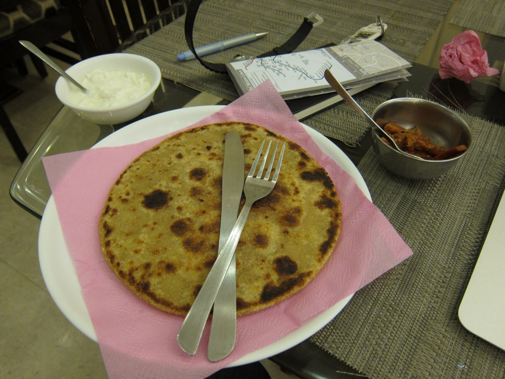 Free breakfast from the hotel. This is the Indian food option. It’s some sort of potato pancake, yogurt, and some sort of pickled vegetable.
