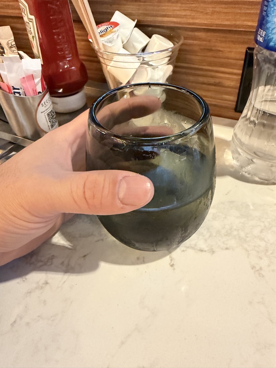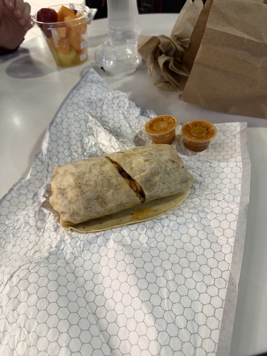 I got my burrito, RL wants something to eat. We ordered proseccos to celebrate, expected tiny flutes for $14 dollars but they came in these giant cups!! Definitely got our money’s worth.