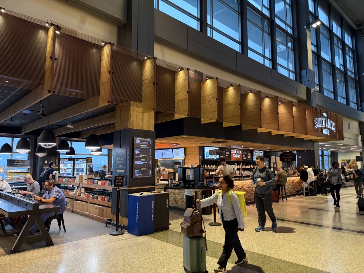 Immigration was easy peasy with no line. Let’s go find a place to eat for lunch and sit.