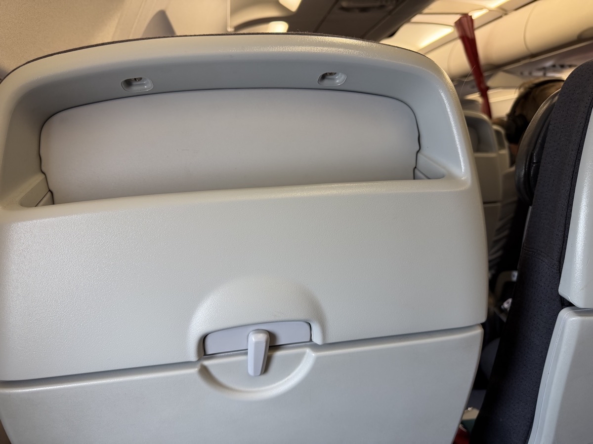 Plane is kinda old. No holder for phone and no video screen. It did, have like most planes now, free WiFi movie streaming through your own device. The flight also wasn’t very full.