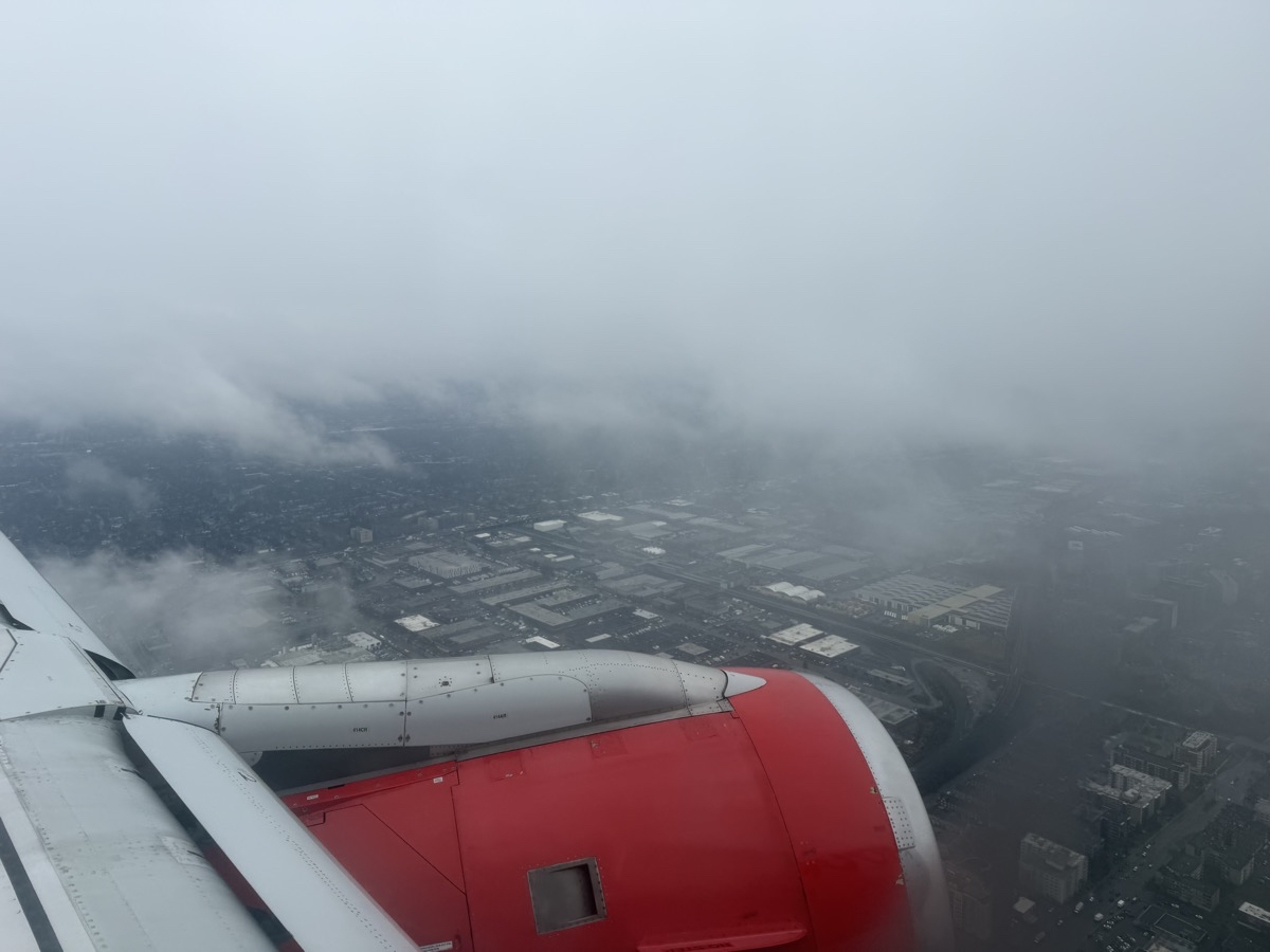 After holding for quite a while, we start descending through the clouds. It’s a lot of clouds, but it’s been cloudy. We descend and I look out to look for the city lights below us. All of a sudden I see lights, but not city lights, it’s the lights for the runway. OMG, we were flying through super dense fog. And as soon as I saw and realize we were only a few feet over the runway, the captain went back full throttle and aborted the landing. I am surprised we even attempted to land in such thick fog with such limited visibility. Why didn’t the tower turn us out. We pulled out of our landing, and pull higher and higher. Sure enough, the captain is flying us back to Montreal. FFFfuuucccckkkk. Now what.