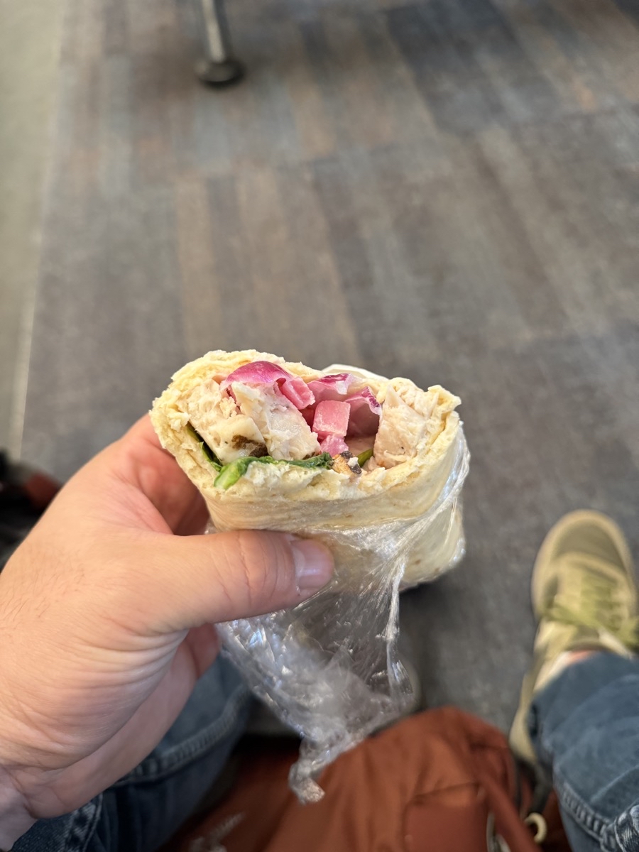 Remember this from earlier on the plane? I’ve been saving it and figured it was a good time to eat it now. Actually pretty good for airplane food.