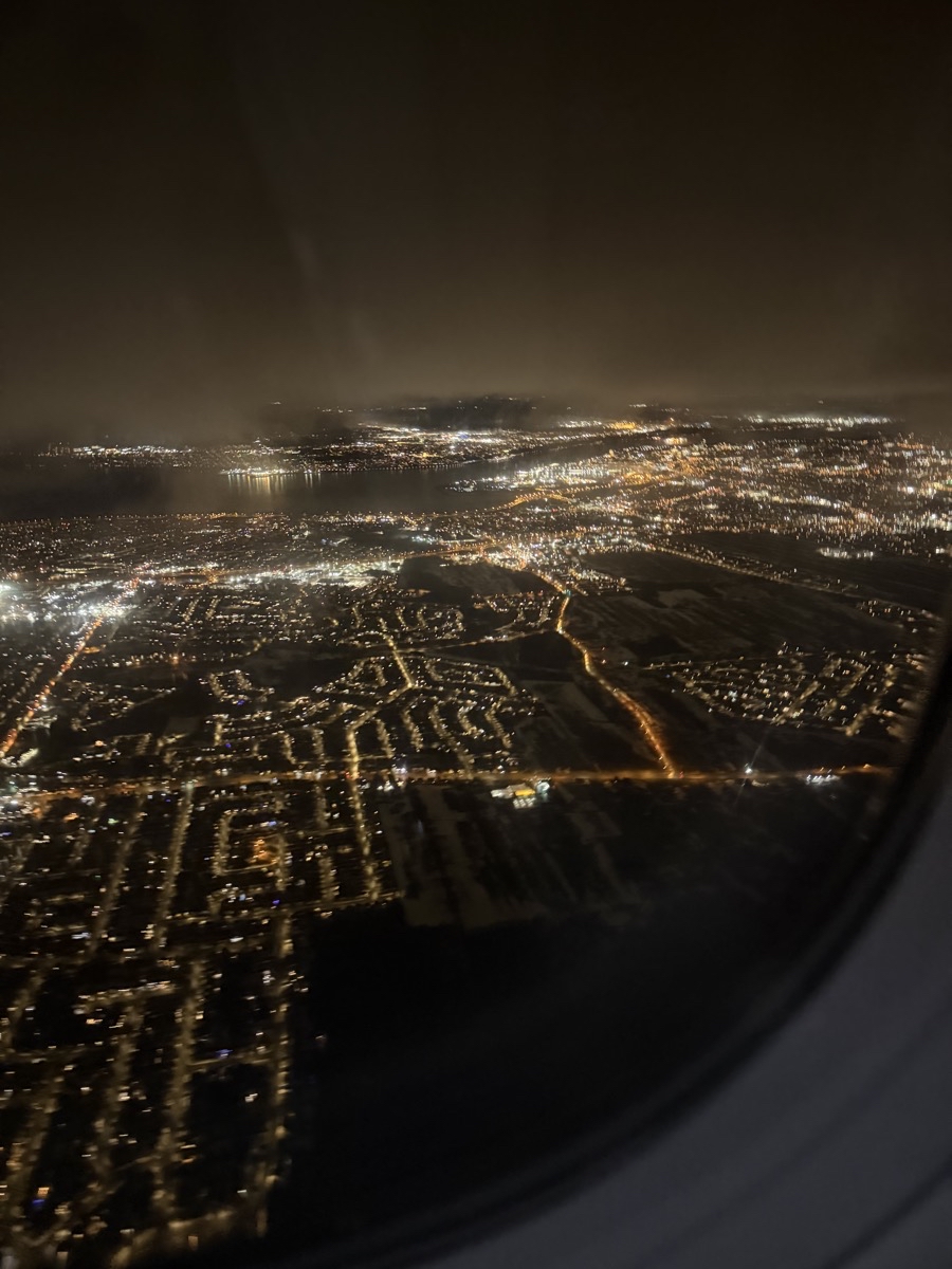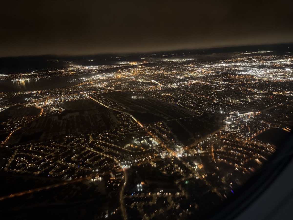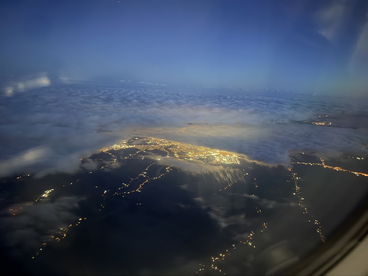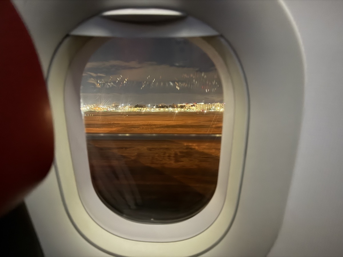 It’s been a really long travel day. Looking forward to this last one hour leg. It’s also golden hour and the sun was beaming beautiful golden light into the cabin.
