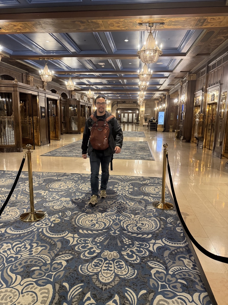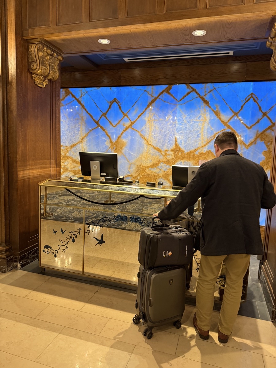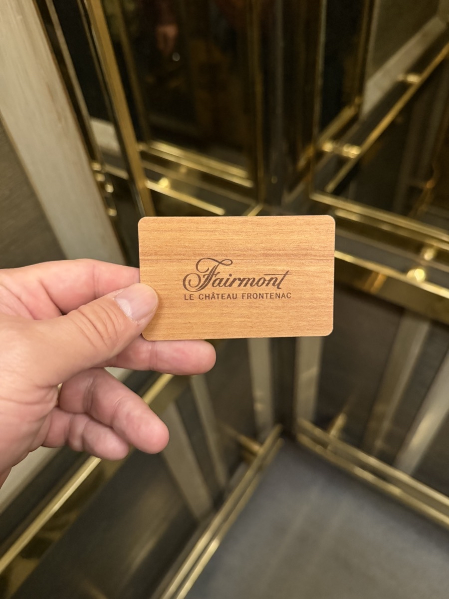 A wooden keycard with electronics inside for tapping, first for me to see. We are in a section of the hotel where we’ll need to take two elevators to get to.