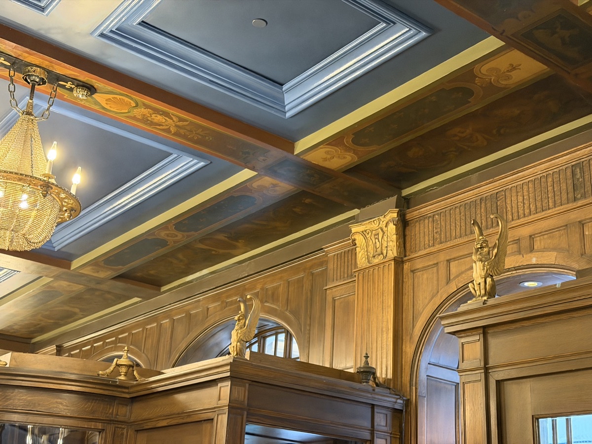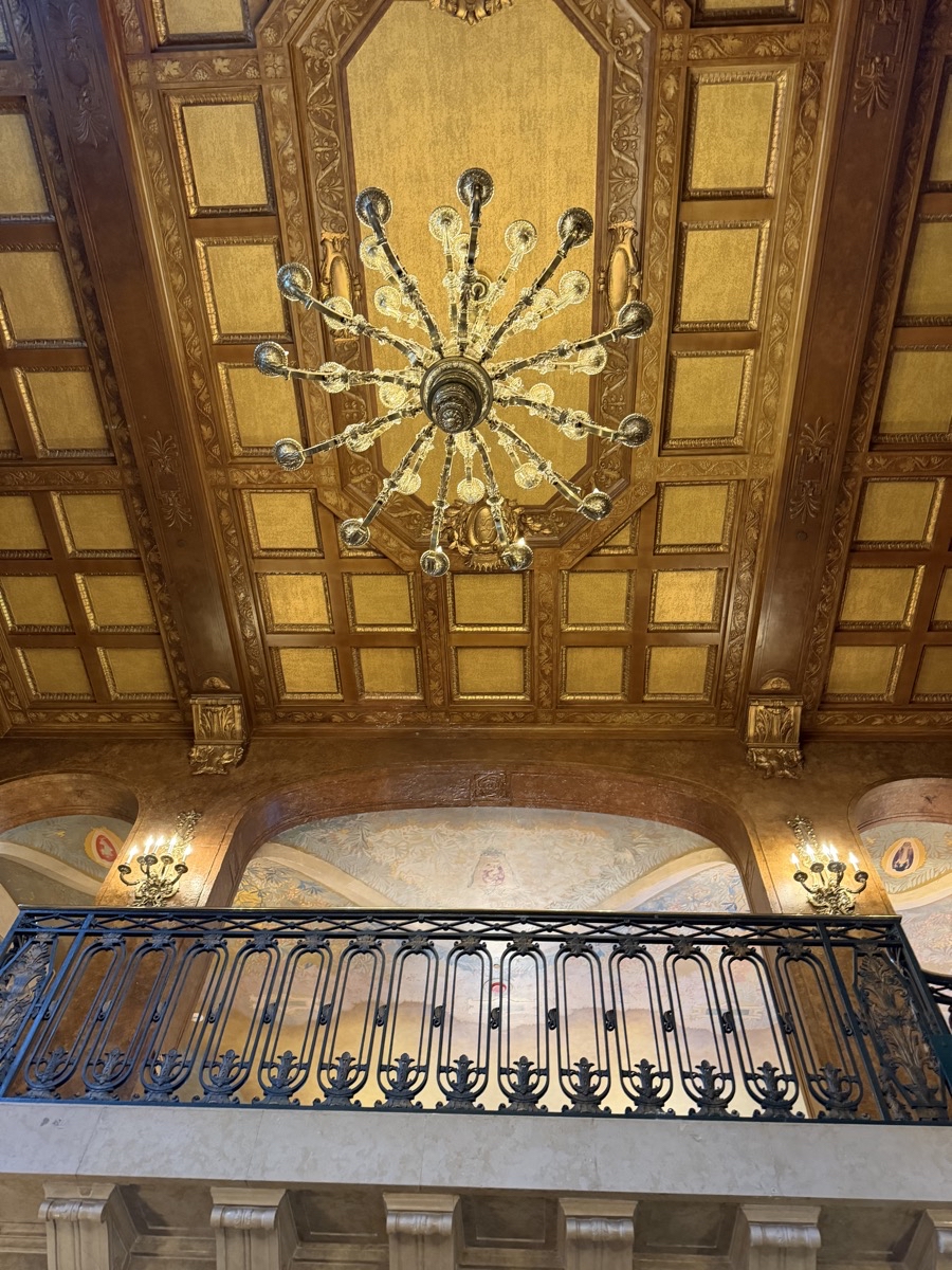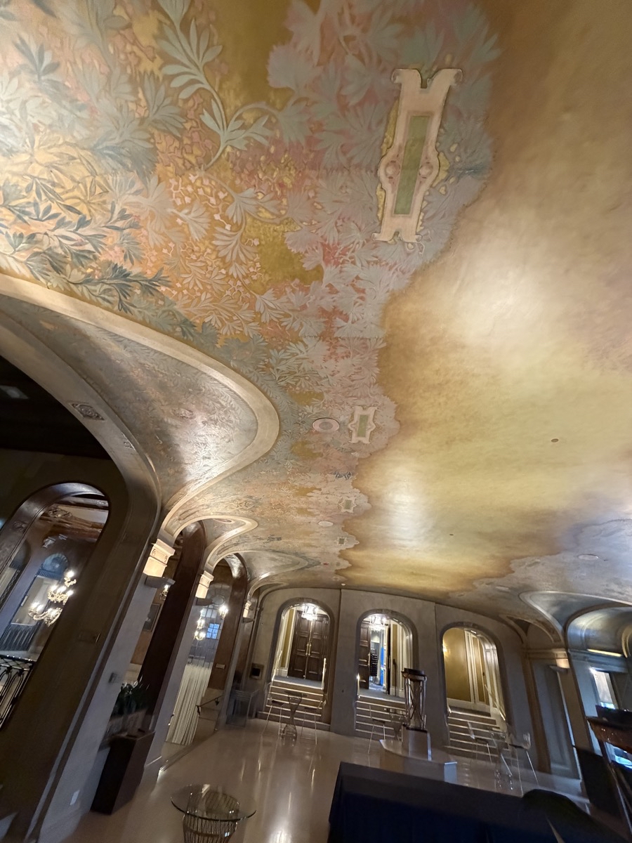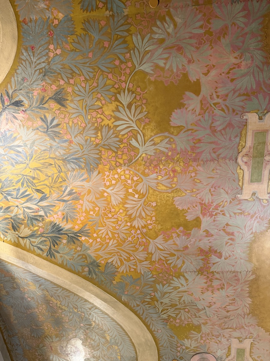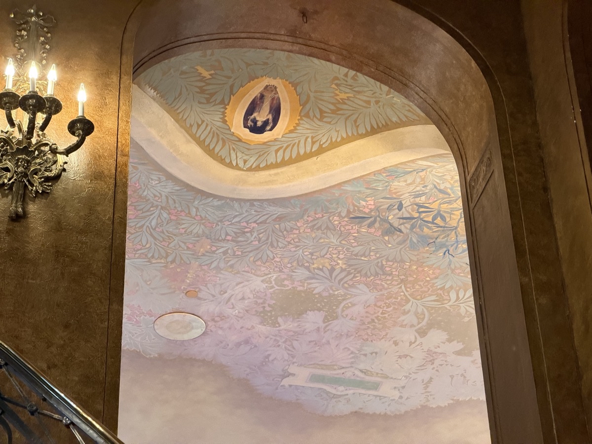 Apparently those paintings on the ceiling are actual paintings then glued to the ceiling. Apparently some Italian technique.