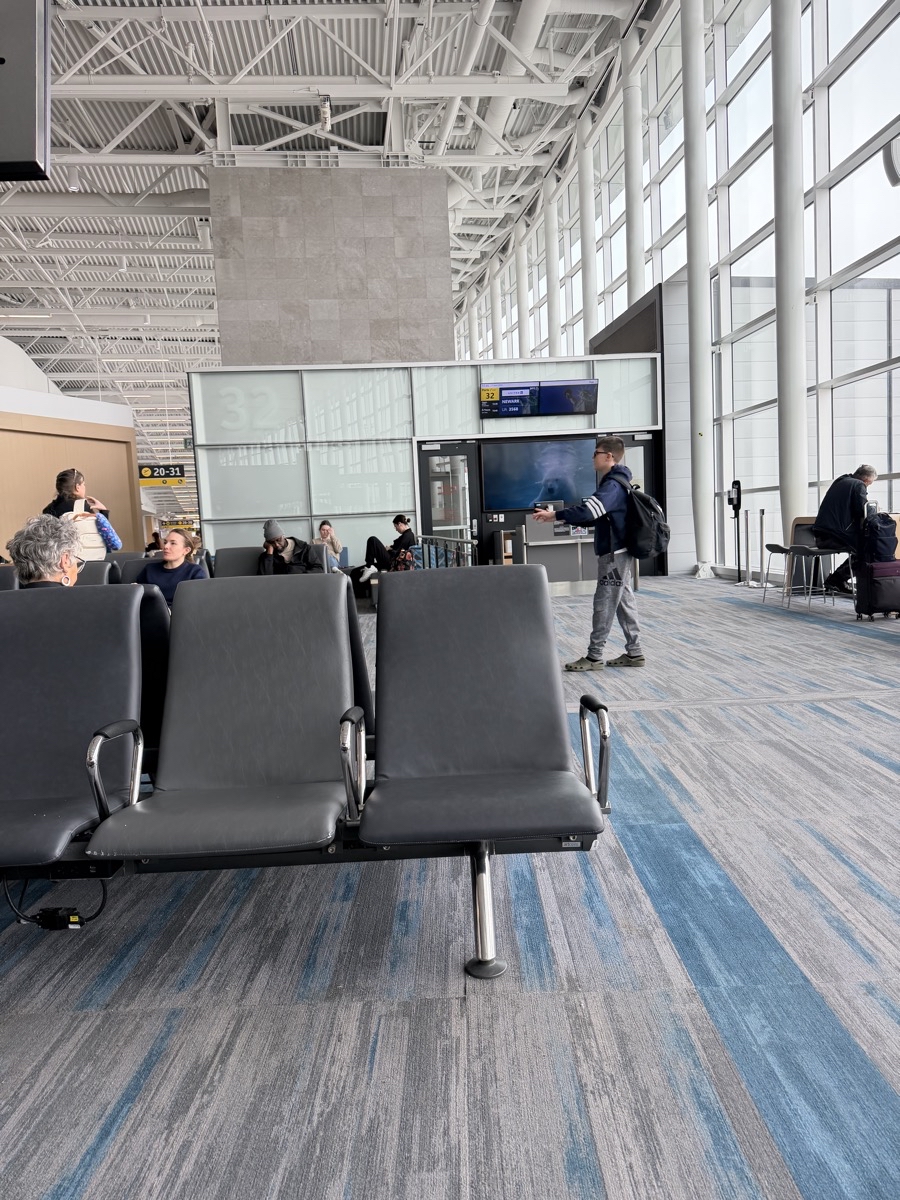 Got our boarding passes and no checked luggage, so straight to the gate.