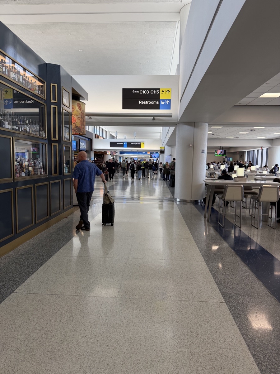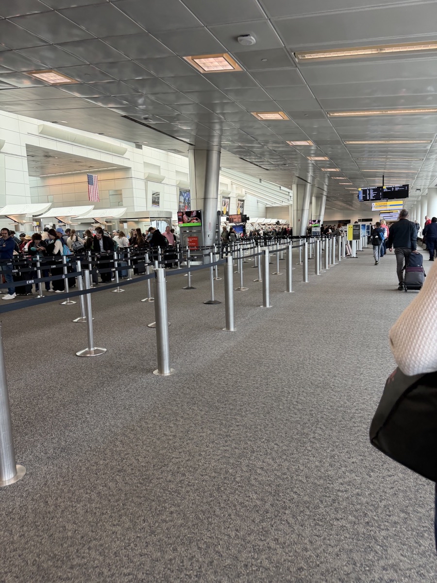 Well…apparently not straight to the gate. We went through security, but got flagged due to a bottle of semi expensive lotion that RL bought at the hotel being over 100mL. Doh. It didn’t occur to either of us that it would be over the limit, our own fault. So now we had to come back down and check one of our luggage to fly the bottle of lotion back to Austin. Oops.